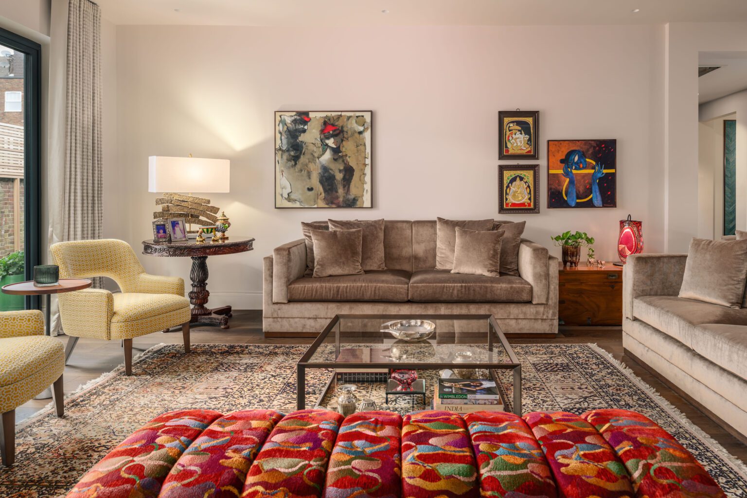 A stunning period property with its gorgeous high ceilings, it was a dream to design it’s interiors. We chose furniture and a colour palette to enhance the client’s wonderful art collection…