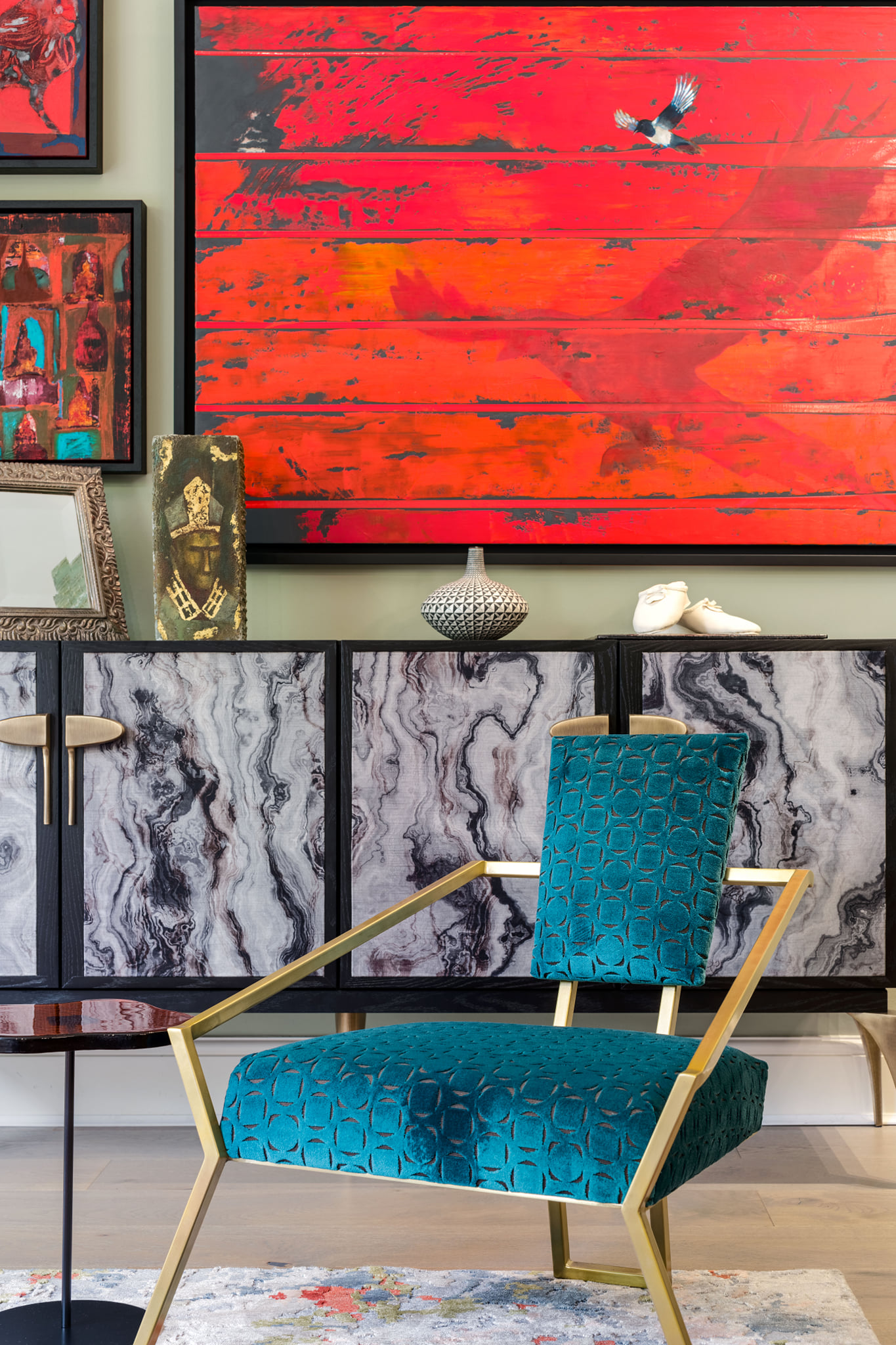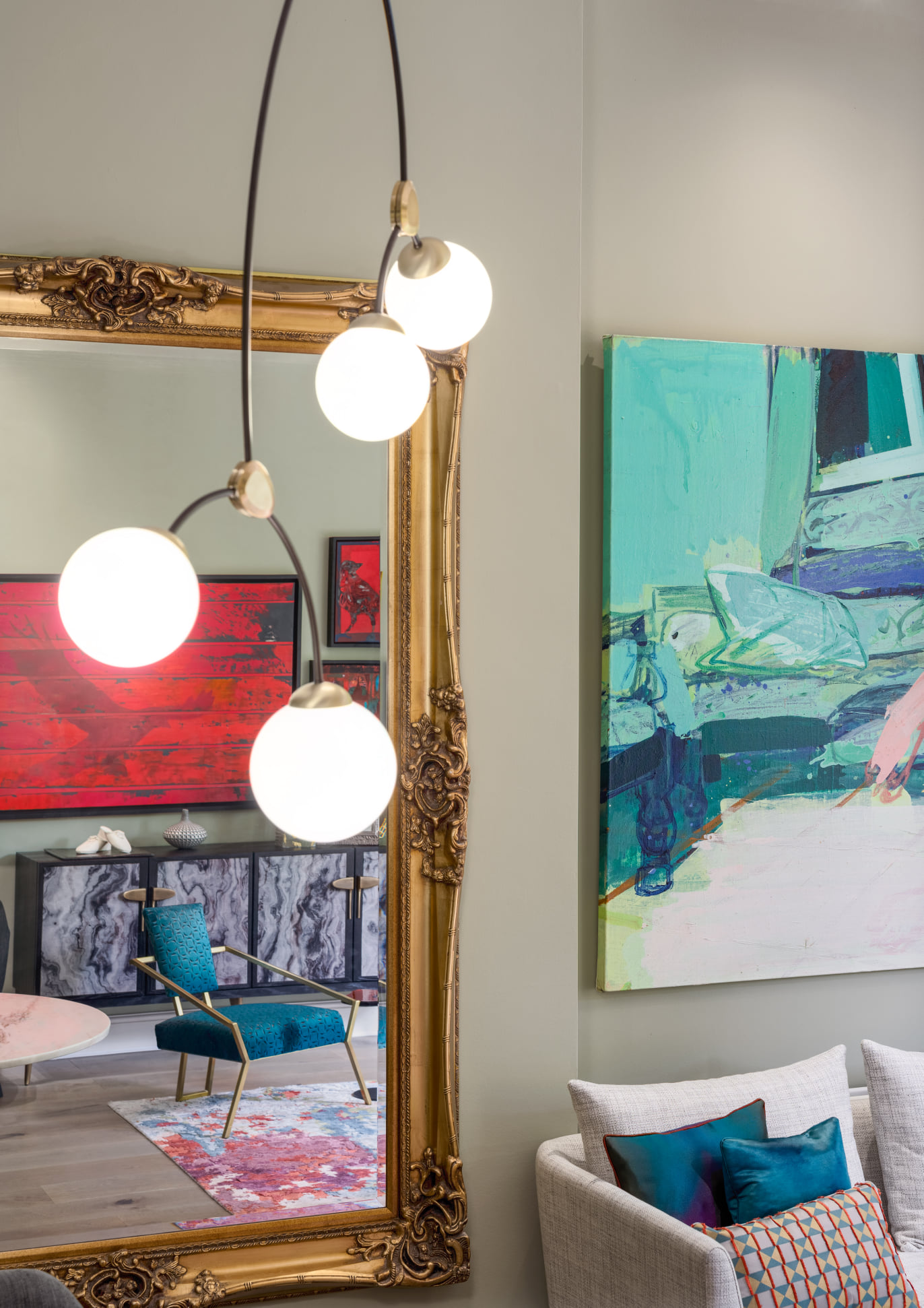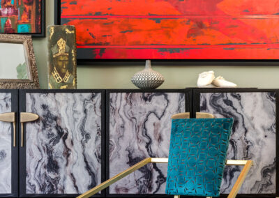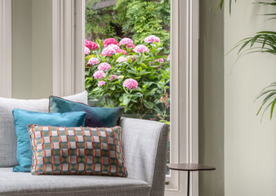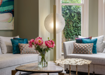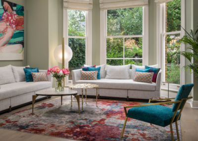 A stunning period property with its gorgeous high ceilings, it was a dream to design it’s interiors. We chose furniture and a colour palette to enhance the client’s wonderful art collection.