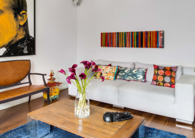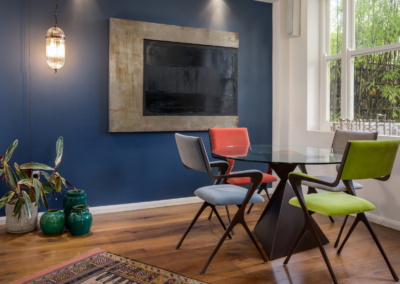 Bold colors intertwine with the carefully selected furniture, art and accessories creating an atmosphere that’s both daring and inviting.