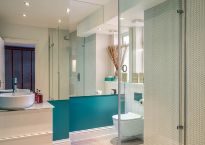 A light filled extension was added to the otherwise dark basement – the large French windows seamlessly integrates the indoors with the outdoors.
